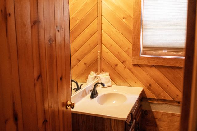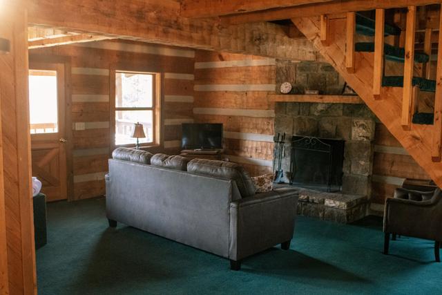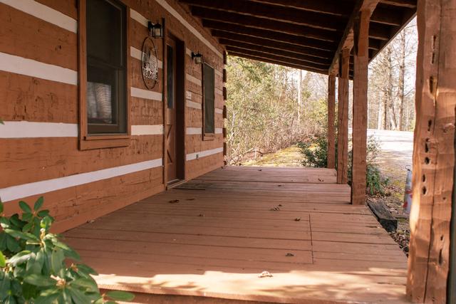 This PRIVATE 1 bedroom, 1.5 bath home is perfect for your romantic getaway. Build a fire in the wood burning fireplace and relax in the indoor whirlpool tub overlooking the mountains.(Must provide own wood). This log cabin is located in the Pittman Center Community, just a short drive from Gatlinburg and the Great Smoky Mountains National Park. Trail's End is at the end of a gravel driveway in a mountain setting.